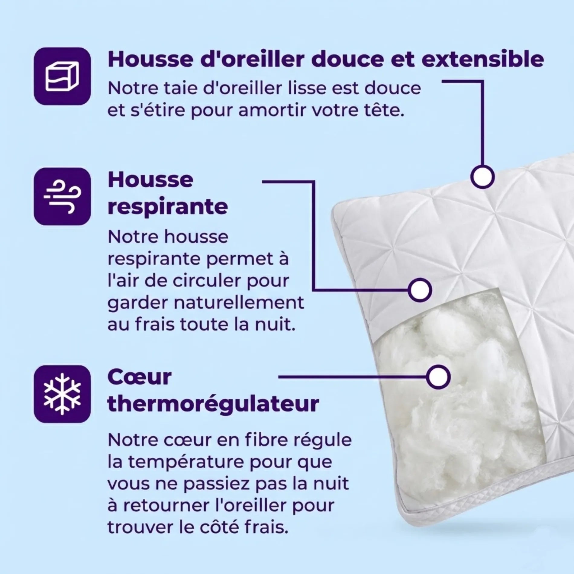 Un mauvais oreiller est la principale cause de douleurs cervicales. Notre oreiller ergonomique est entiĂšrement rĂ©glable pour sâadapter Ă votre position de sommeil.